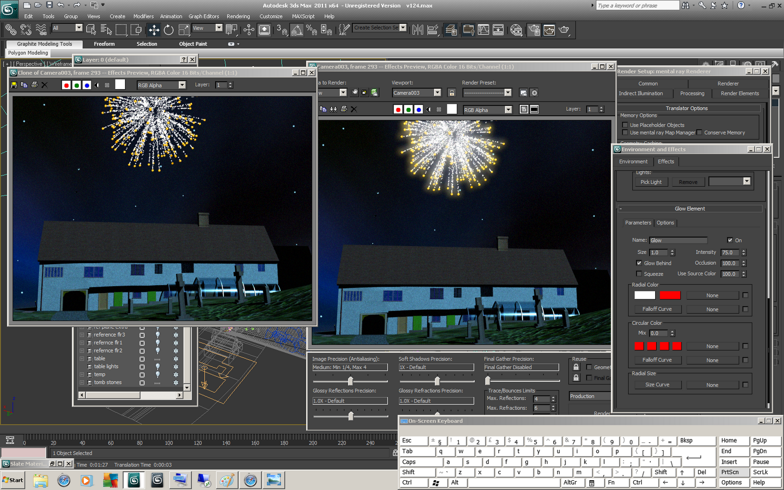 Same process except Star effect rather then glow - compared render tests - chose to use star effect